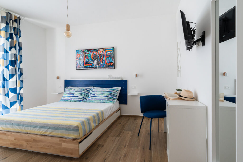 Appartamento con 4 posti letto per soggiorni a Bari Eleven House si sviluppa su due livelli per garantire il massimo spazio. Al primo piano troverai un luminoso soggiorno con cucina, divano letto matrimoniale e una camera matrimoniale con balcone privato.