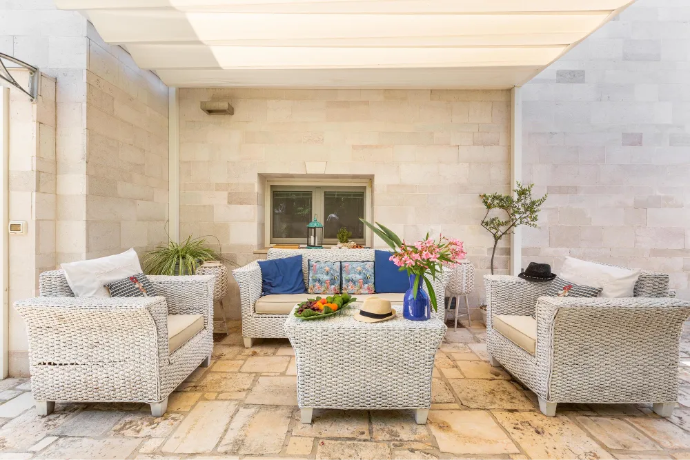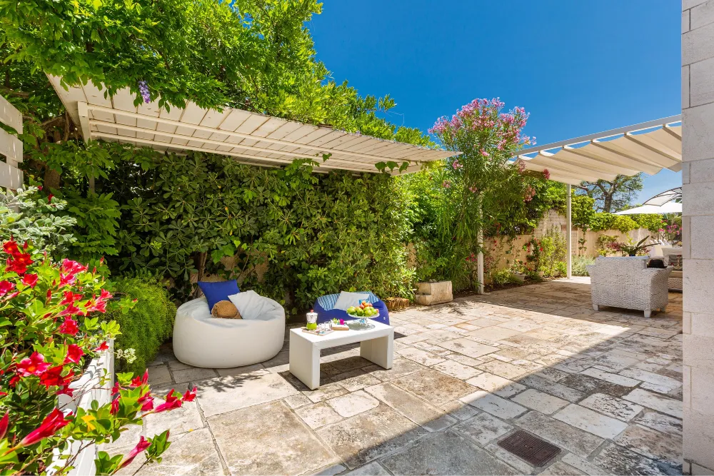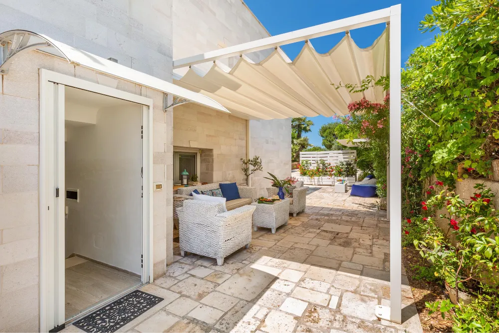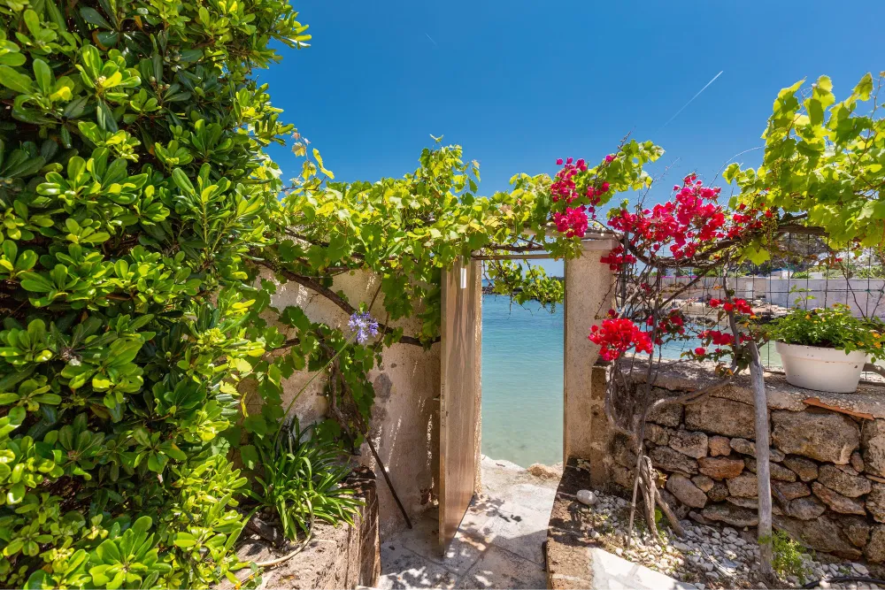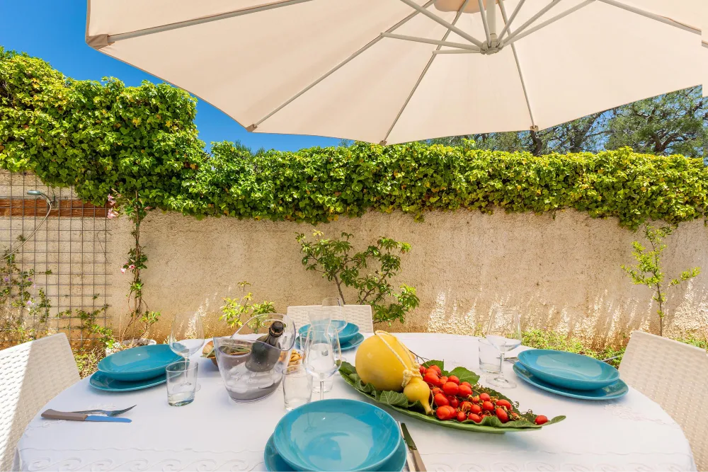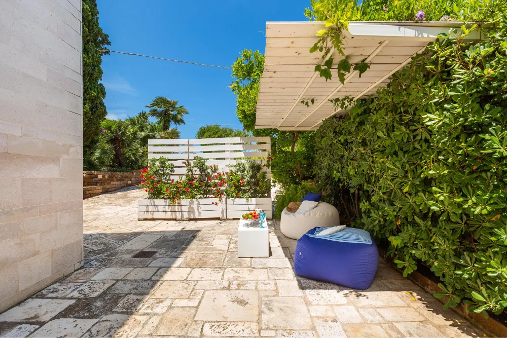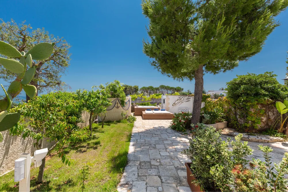 Da questa zona esterna vi è l’accesso diretto alla spiaggia, in comune con la proprietà della villa.