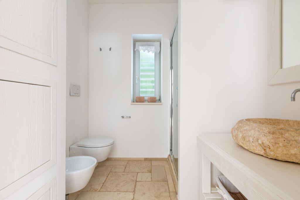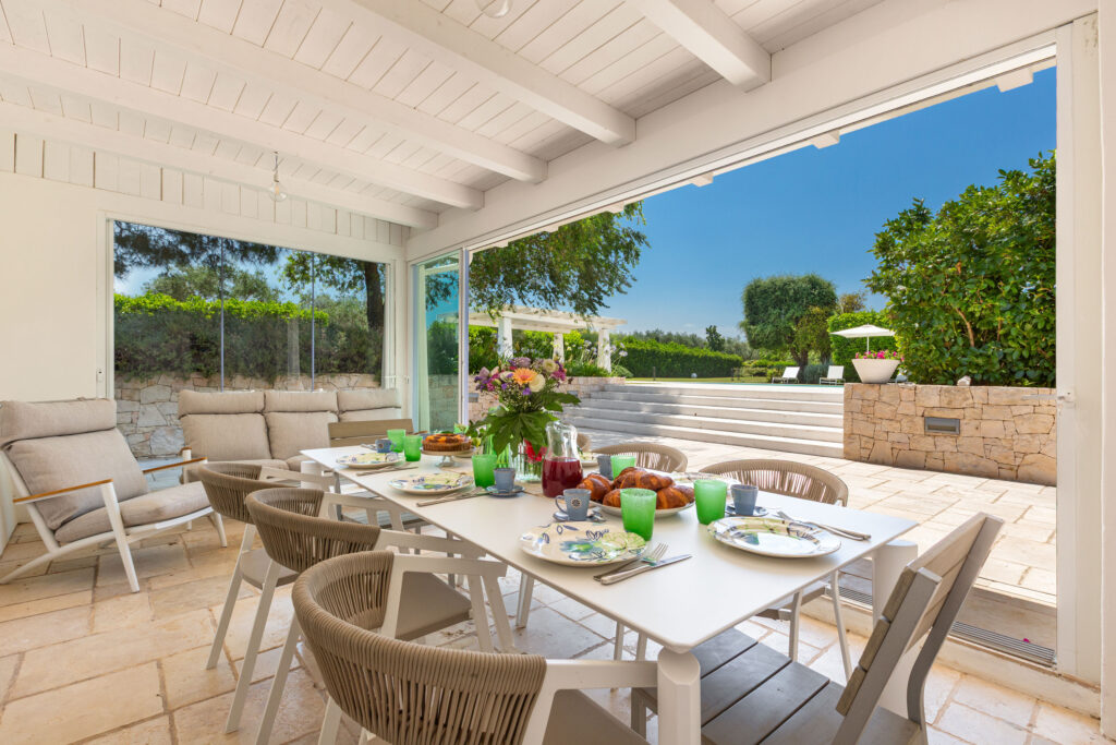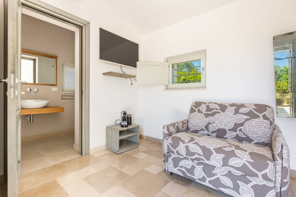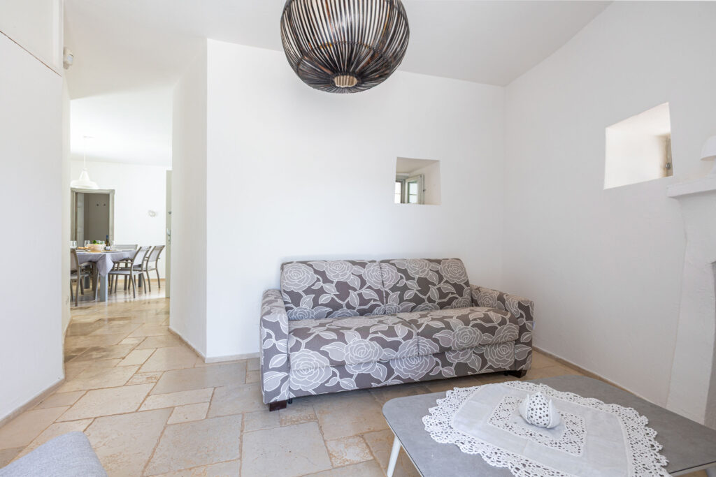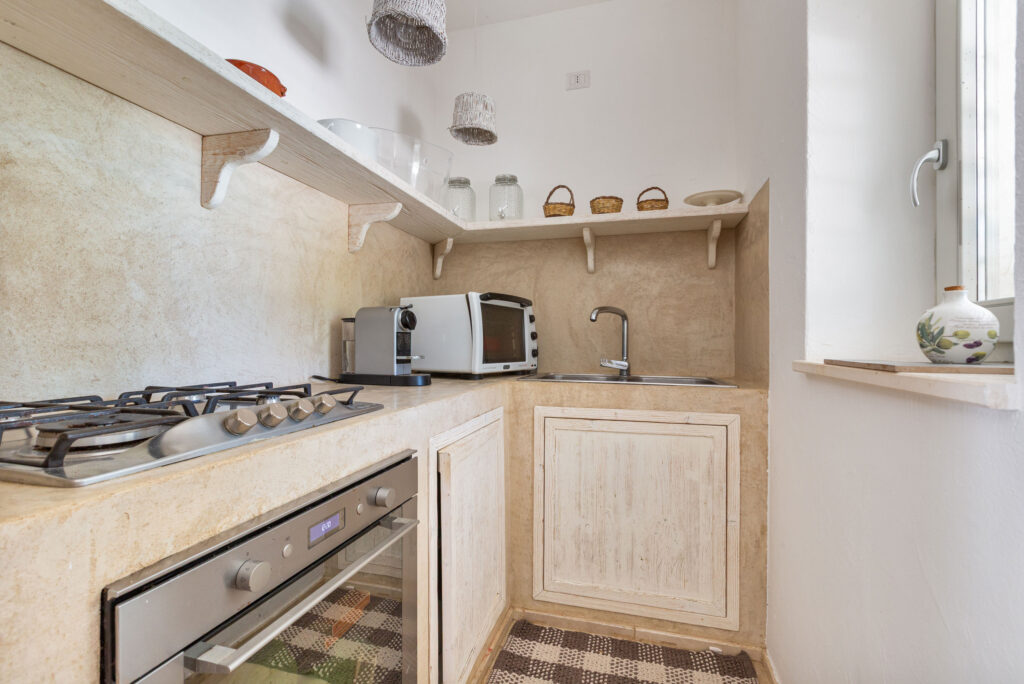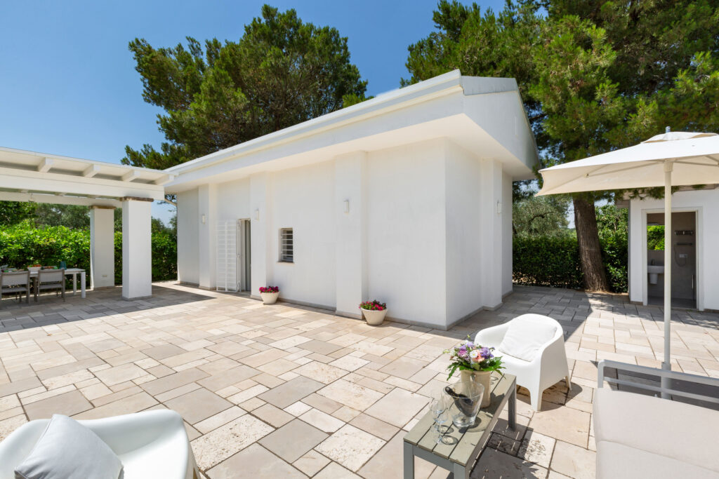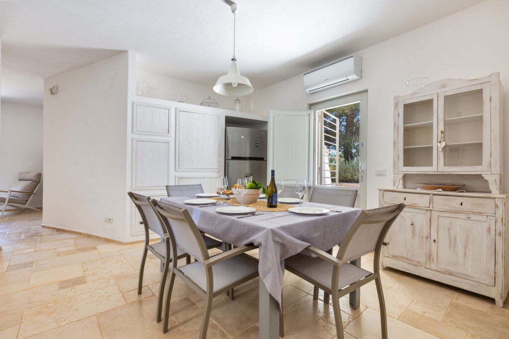 La proprietà si divide in tre unità indipendenti che si affacciano sulla piscina. La struttura principale nel trullo antico comprende una cucina attrezzata, una camera matrimoniale e un bagno en suite. Inoltre, il patio esterno può essere chiuso con vetrate per pranzare all’aperto in ogni stagione.